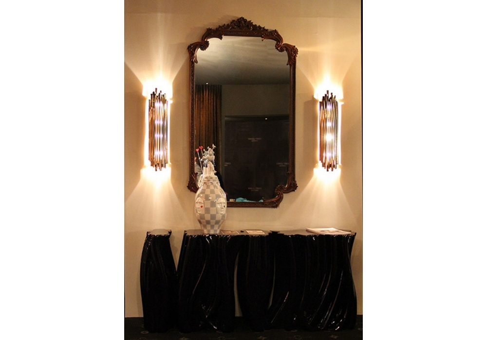 Brubeck XL firmata da DelightFULL è una lampada da parete, il corpo è realizzato a mano in ottone è ispirata all'organo a canne. Per un tocco finale, vanta una finitura placcata oro molto art déco.