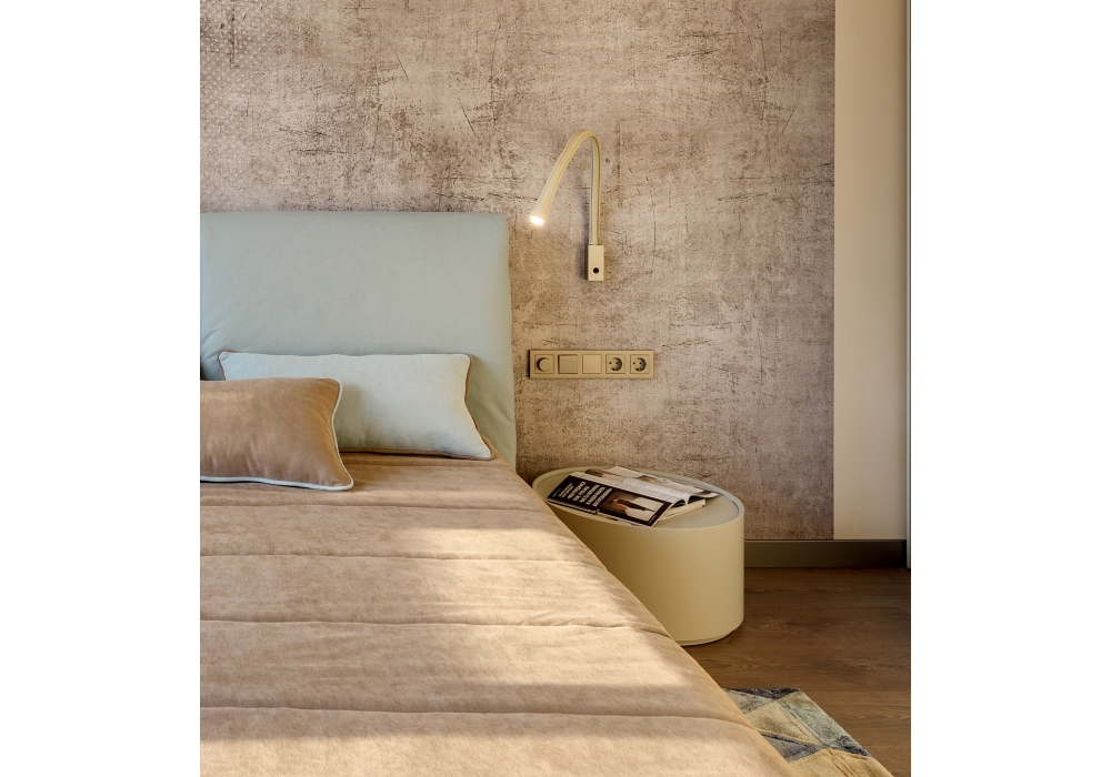 Flexiled designed by King & Roselli per Contardi è una lampada da parete con base quadragnolare in metallo in nickel satinato o bronzo spazzolato. Il braccio è mobile e riposizionabile in maglia d'acciaio con testa rivestita in pelle ed adotta una sorgente luminosa di tipo LED. Flexiled è disponibile in differenti finiture,dimensioni e versioni.