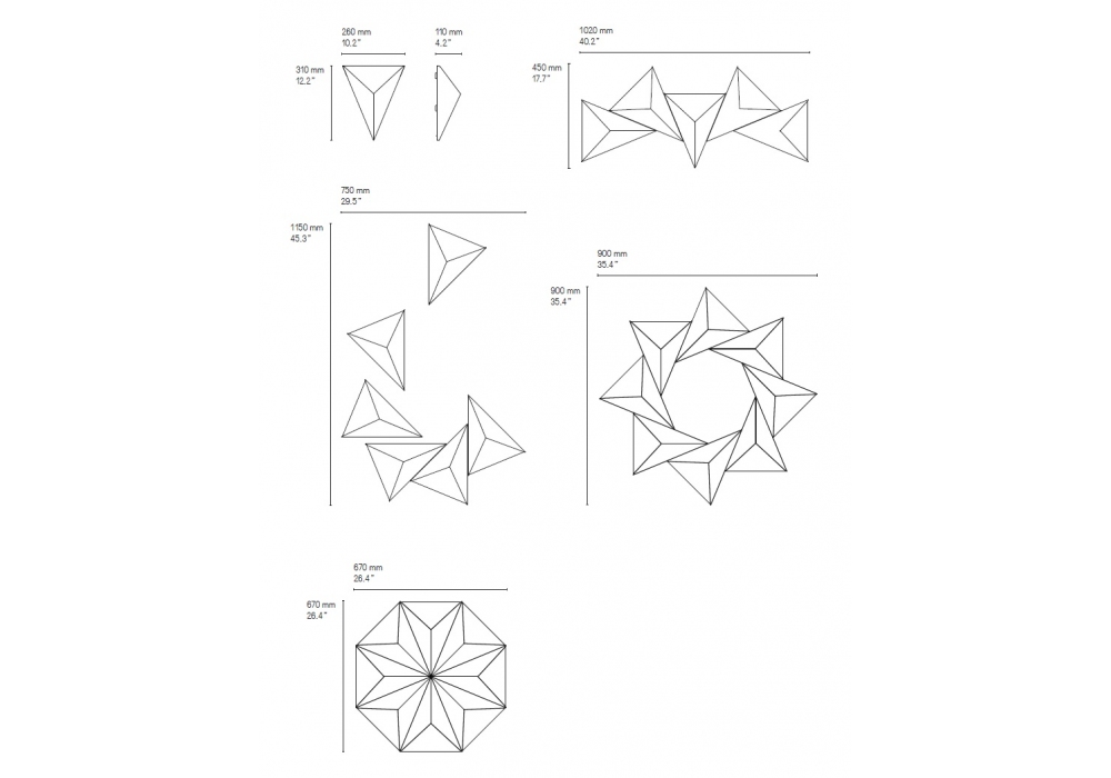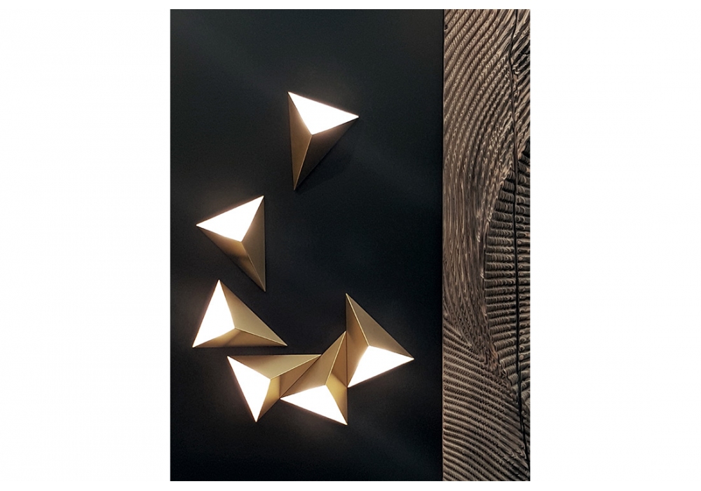 Tetra firmata da Émilie Cathelineau per CVL Luminaires è una lampada da parete disponibile in varie finiture. Tetra è composta da tetraedi di ottone che possono essere posizionati e connessi tra loro per creare infinite figure geometriche. I seguenti modelli sono solo esempi di possibili combinazioni ed i pezzi vanno assemblati a discrezione del cliente.