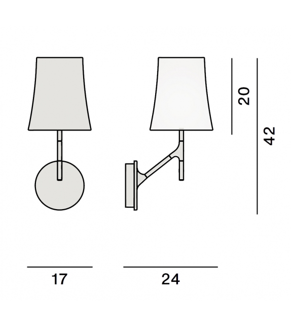 Birdie firmata da Ludovica e Roberto Palomba per Foscarini lampada da parete con struttura portante in acciaio e metallo e paralume in policarbonato. La sorgente luminosa è con innesto E27 di tipo LED o alogena. Birdie è disponibile in differenti finiture.