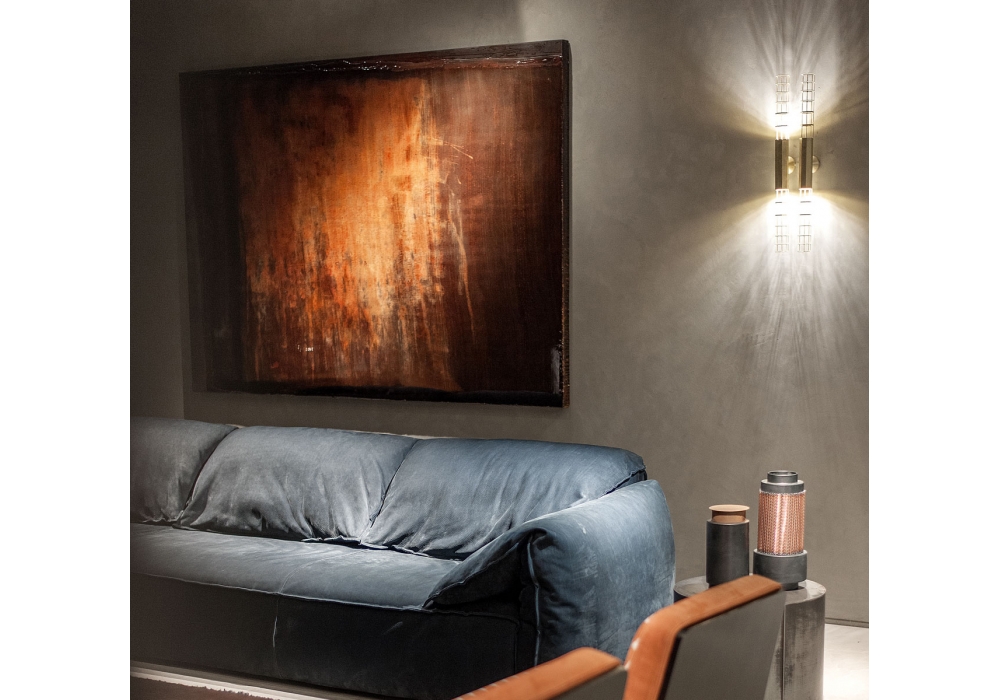 Hubble Palomar firmata da Pietro Russo per Baxter è una lampada da parete con fonte luminosa a led e struttura in ottone satinato tagliata a laser.