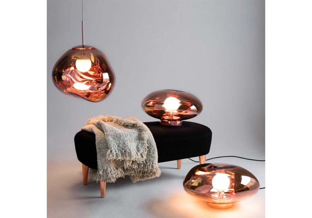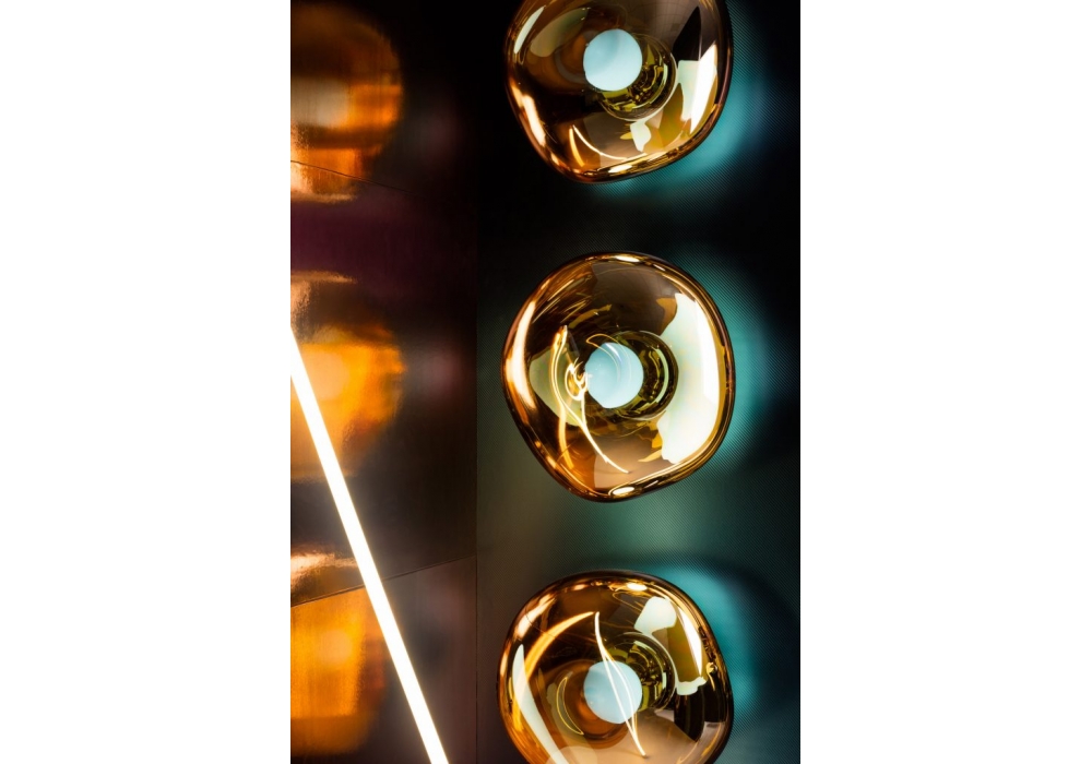 Melt Surface firmato da Tom Dixon è una lampada da parete o soffitto in policarbonato. Globo luminoso distorto. Disponibile in diverse finiture e due dimensioni.