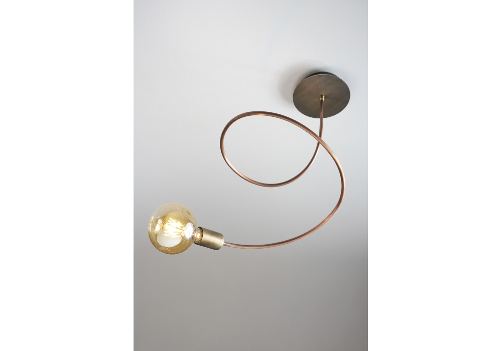 Pato firmata da Franco Zavarise per Zava è una lampada da parete/soffitto realizzata in ferro, ottone e rame. Il tubo della lampada è disponibile solo nella finitura ramata e può essere piegato a piacere. Disponibile in diverse finiture.