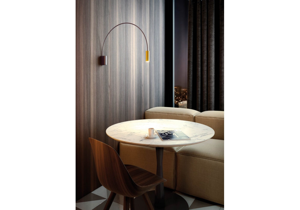Volta firmata da Nahtrang Studio per Estiluz è un lampada da parete con struttura portante in alluminio tubolare di colore nero. La testa è di forma cilindrica in alluminio con diffusore ed ottica in PMMA che scherma una sorgente luminosa di tipo LED. Volta è disponibile in differenti finiture, versioni e dimensioni.