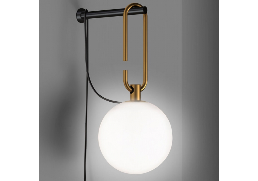 NH firmata da Neri&Hu per Artemide è una lampada da parete con diffusore sferico realizzato in vetro soffiato bianco e anello in ottone spazzolato. La sorgente luminosa adottata è di tipo LED.