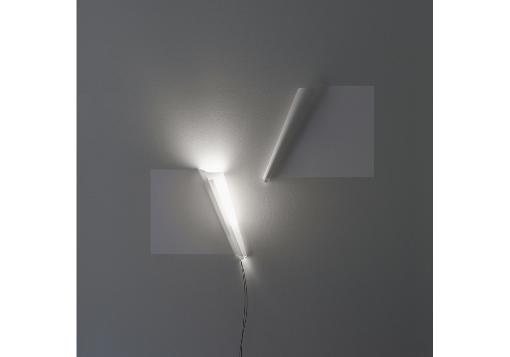 Pagina firmata da Alessandra Dallagiovanna per Davide Groppi è una lampada da parete composta da una penna a LED e un foglio di carta dotato di micro ventose in modo che possa essere fissato a una parete.