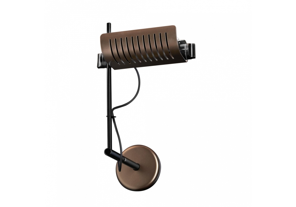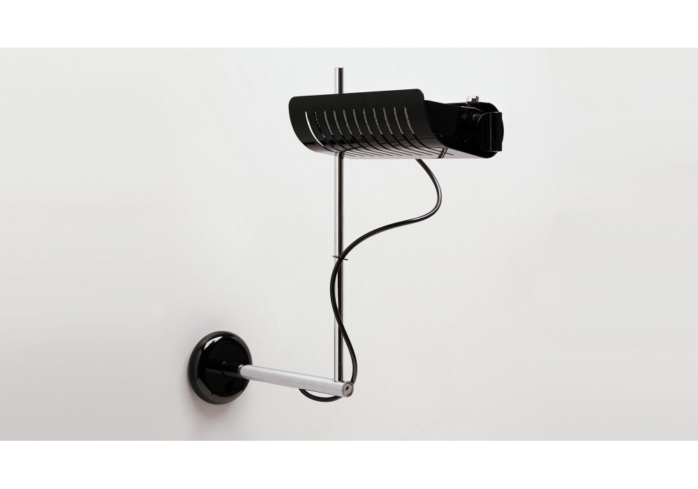 Colombo firmata da Joe Colombo per Oluce è una lampada da parete con supporto in acciaio e stelo verticale in metallo cromato. Il diffusore è orientabile in alluminio verniciato e scherma una sorgente luminosa di tipo LED. Colombo è disponibile in differenti finiture.