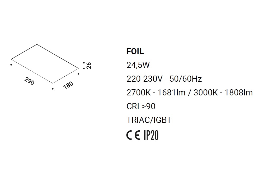Foil firmata da Design 967 per Davide Groppi è una lampada da parete o soffitto di forma quadrangolare interamente realizzata in metallo. La sorgente luminosa adottata è con innesto R7s di tipo LED o alogeno. Foil è disponibile in differenti finiture.