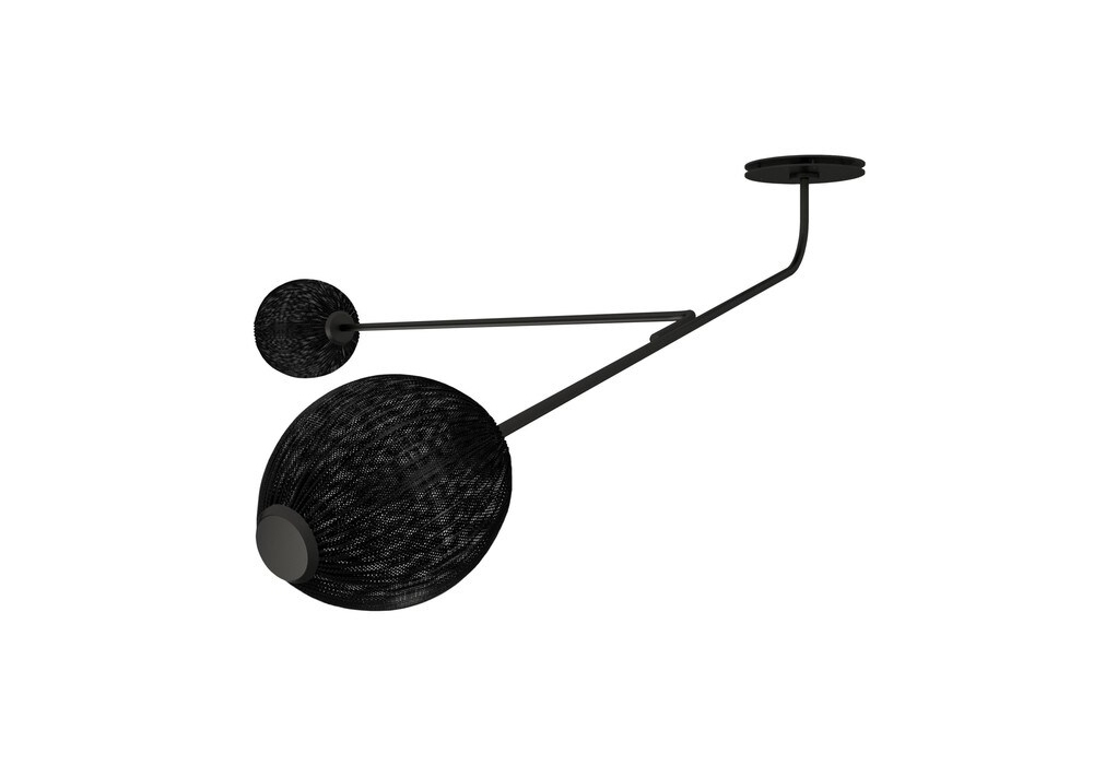Satellite firmata da Mathieu Matégot per Gubi è una lampada da parete che comprende due paralumi realizzati in acciaio perforato, piegati a fisarmonica in forme ovoidali e montati su bracci scultorei allungati in metallo.
