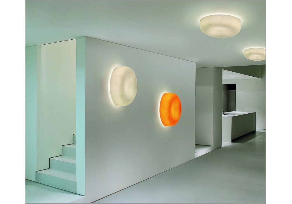 Ola firmata da Enrico Franzolini per Quadrifoglio Group è una lampada da parete / soffitto con paralume in fibra di vetro disponibile in diverse finiture.