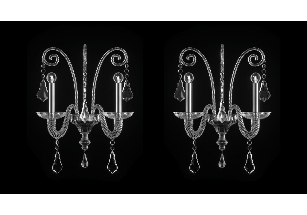 Izmir firmata e prodotta da Barovier & Toso è una lampada da parete con struttura portante e decorazioni in metallo color oro galvanizzato o cromo lucido. Il corpo lampada ed i bracci sono interamente rivestiti in vetro veneziano impreziositi da pendenti in cristallo. La sorgente luminosa adottata è di tipo LED o alogena dimmerabile. Izmir è disponibile in differenti finiture.