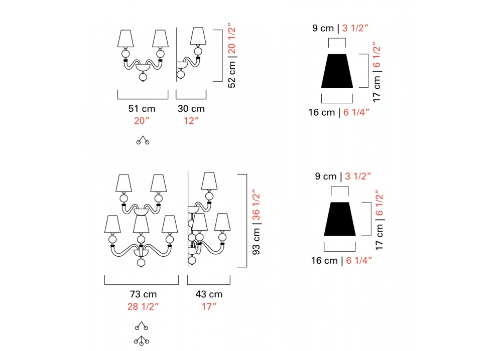 | Sorgente luminosa | E14/LED o Halo. |
