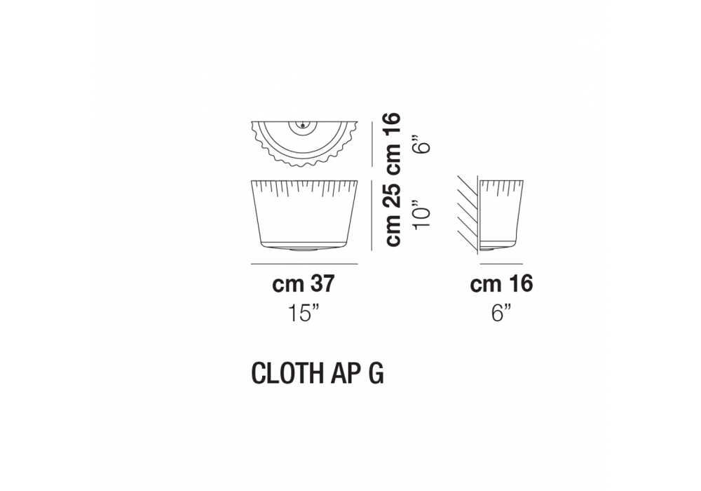 Cloth firmata da Romani Saccani Architetti Associati per Vistosi è una lampada da parete con struttura portante in metallo color cromo lucido. Il diffusore è in vetro di forma semicircolare con superficie ondulata e scherma una sorgente luminosa con innesto E27 di tipo LED o alogena dimmerabile. Cloth è disponibile in differenti finiture di diffusore.