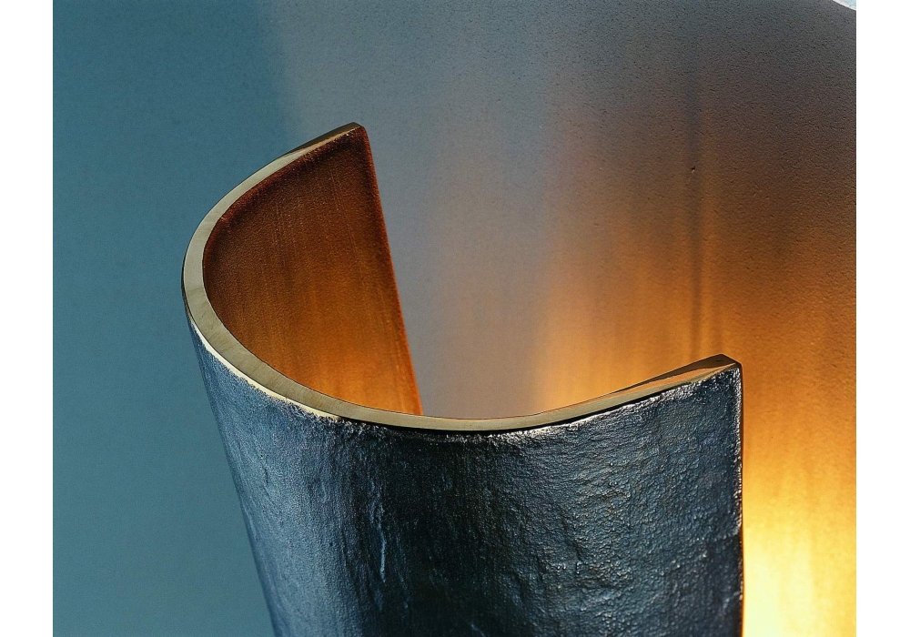 Toscana firmata da Mies/van Gessel per Quasar è una lampada da parete la forma della struttura è ispirata ad una tegola color alluminio. La sorgente luminosa adottata è di tipo LED o alogeno. Toscana è disponibile in differenti modelli e solo su richiesta color bronzo.