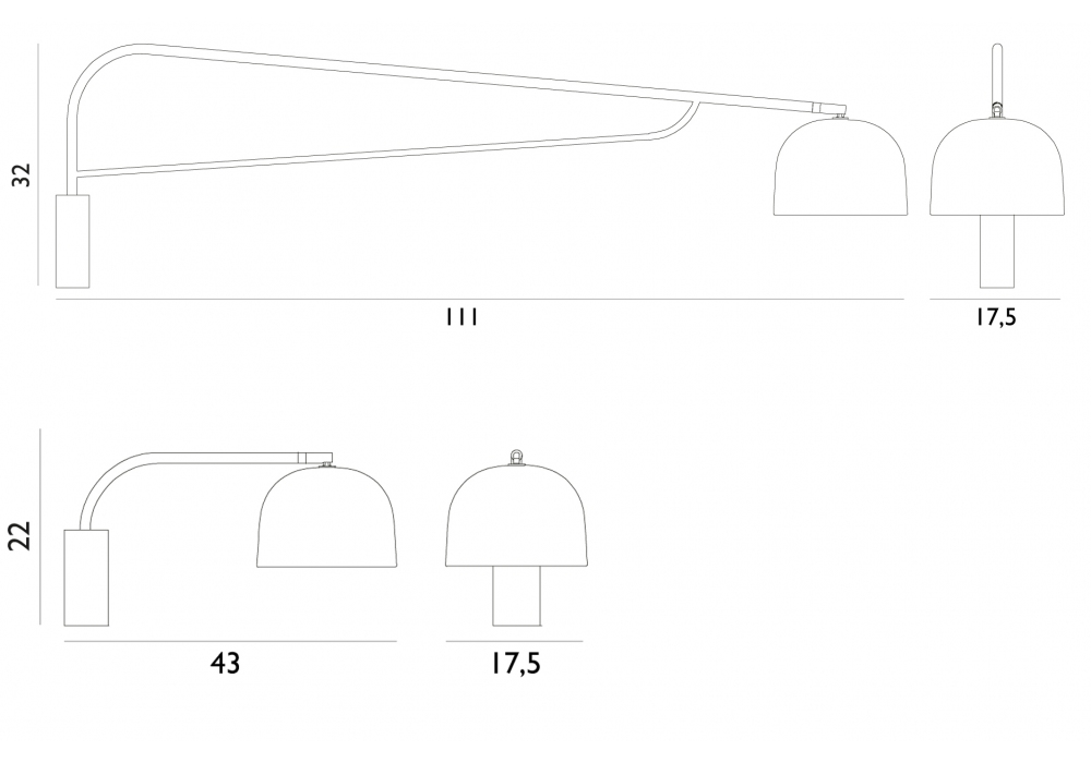 | Dimensioni | 111 x Ø 17,5 x H 32 cm; 43 x Ø 17,5 x H 22 cm. |