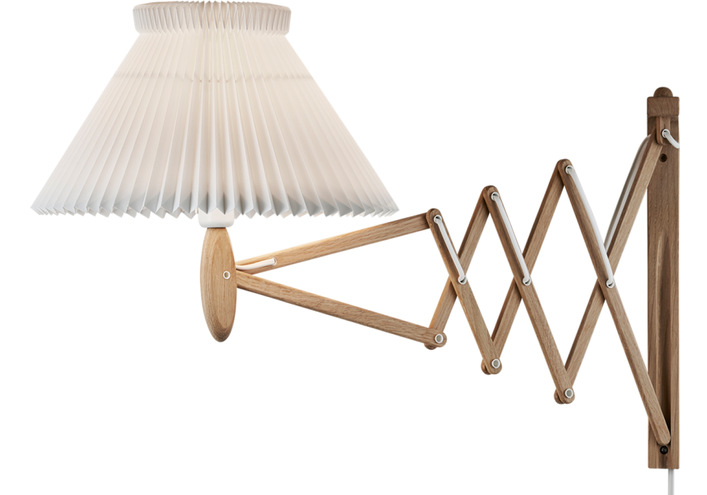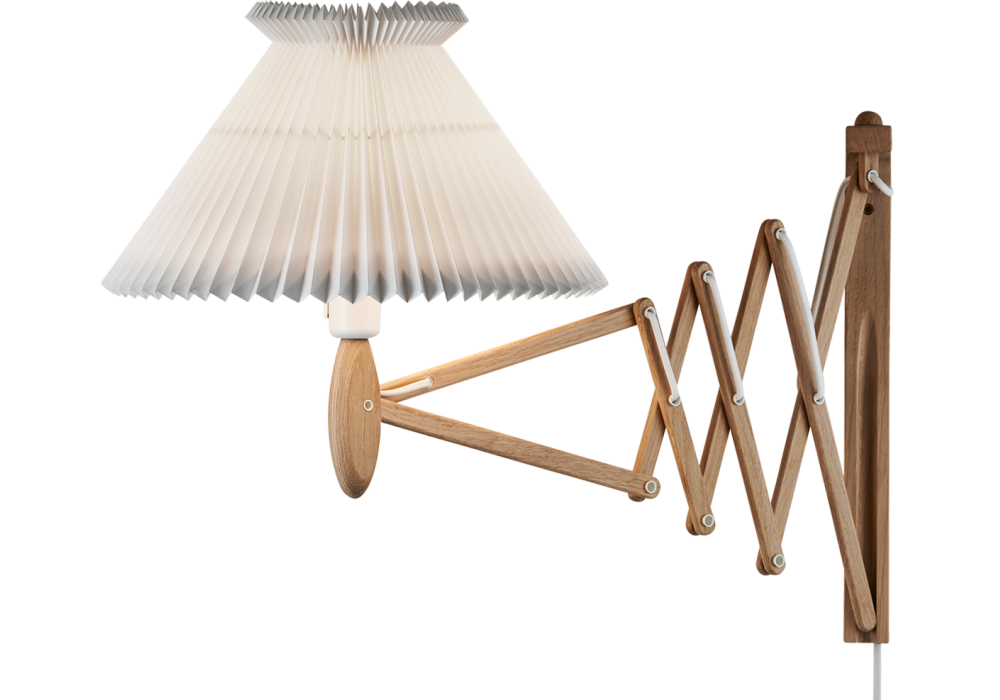 Sax 234 firmata da Erik Hansen per Le Klint è una lampada da parete composta dalla combinazione di metallo,legno, materiale plastico e cartaceo. Strutturata con un sistema a pantografo consente di avere una lampada molto versatile, dando profondità ed al contempo misure ridotte e compatte. Il paralume è di forma circolare, ed arricchito da una superficie con pieghe regolari e precise per garantire una diffusione della luce ottimale. La sorgente luminosa adottata è di tipo LED o alogeno (non inclusa) alimentata da un cavo rivestito in materiale plastico di colore bianco. Sax 234 è disponibile in differenti finiture di legno e con paralume in materiale plastico e in raffinata carta in due differenti modelli.