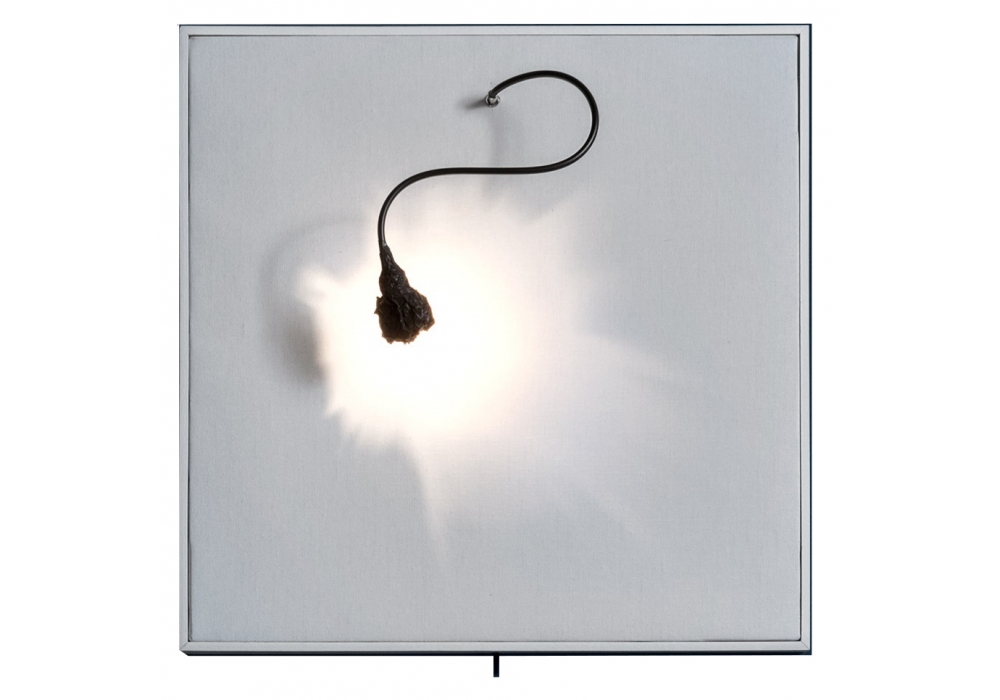 Luce che dipinge firmata e prodotta da Catellani&Smith è una lampada da parete a LED, con tela bianca, flex modellabile e schermo copri lampadina neri.