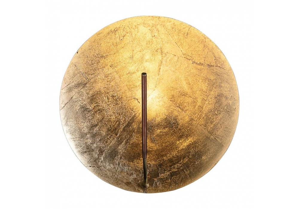 Luna W firmata da Enzo Catellani per Catellani&Smith è una lampada da parete a LED, con base in metallo, asta in rame, flex in ottone, disco in metallo rivestito in foglia color oro, argento o rame.