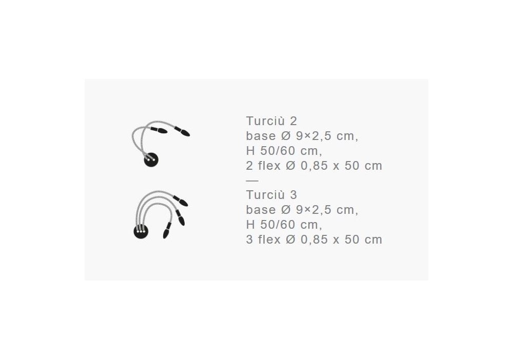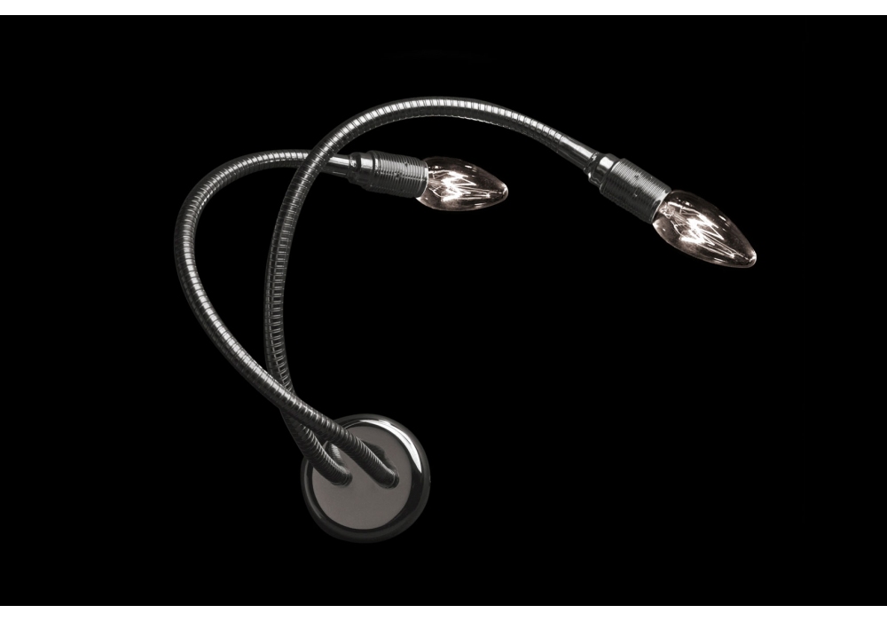 Turciù 2/3 firmata e prodotta da Catellani&Smith è una lampada da parete con base satinata in metallo, flex modellabili in ottone o nickel. Disponibile in due modelli, con due o tre flex.