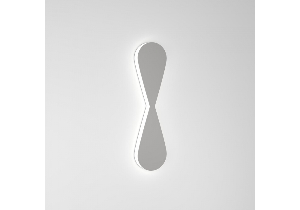 Papillon firmata da Ateleir Areti è una lampada da parete realizzata in ottone spazzolato o nichel e pannello laterale in acrilico bianco.