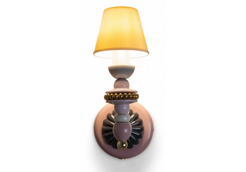 Firefly firmata da Dept. Diseño y Decoración per Lladró è una lampada da parete interamente realizzata e dipinta a mano. Il corpo lampada è costituito da porcellana lucida con varie decorazioni e colori, mentre il paralume è in porcellana translucida.