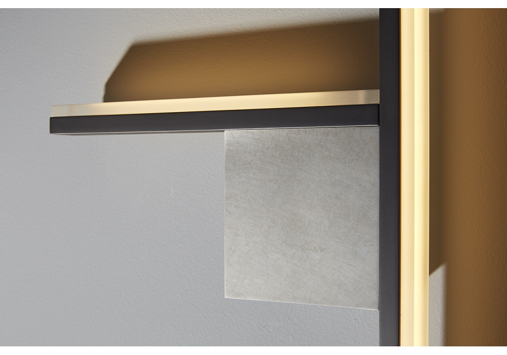 Almost Essence firmata da Massimo Tonetto per Venicem è una lampada da parete a luce diffusa. Struttura in ottone delabré o nickel nero opaco. Disponibile nella versione destra o sinistra.