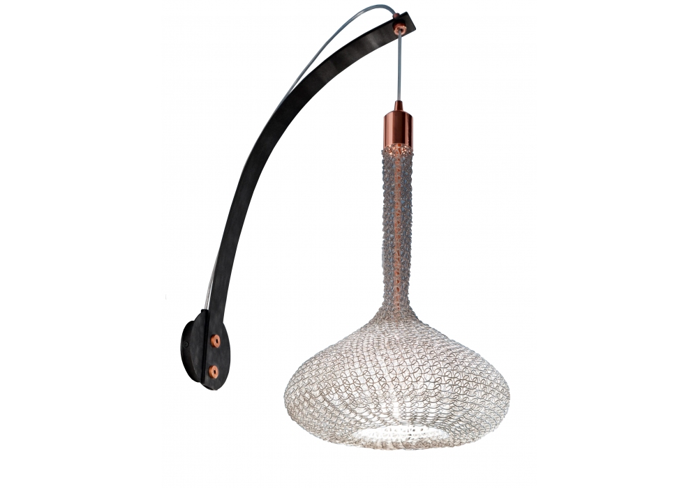 Luce firmata da Domenico Rinaldi per Fisionarte è un lampada da parete con struttura portante in metallo in differenti finiture. Il diffusore è in maglia metallica intrecciata e scherma una sorgente luminosa con innesto E14 di tipo LED o alogena. Luce è disponibile in differenti finiture di struttura e modelli di diffusore.