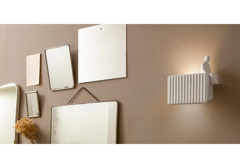 Umarell firmata da Giorgio Biscaro è una lampada da parete in ceramica bianca opaca con accessori opzionali in diversi modelli. Uso interno.