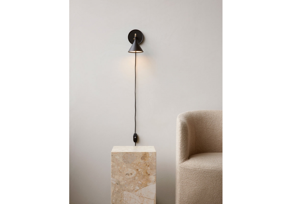 Cast Sconce firmata da Tom Chung & Jordan Murphy per Audo Copenhagen è una lampada da parete realizzata in alluminio verniciato nero, parti metalliche in ottone spazzolato.