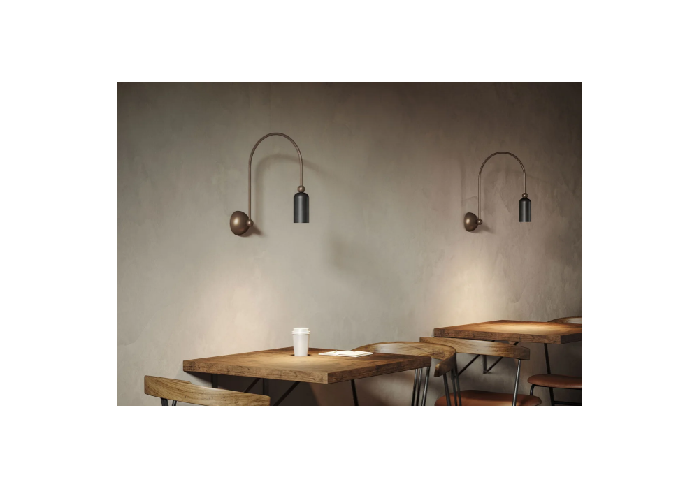 Madame firmata da DT Studio per Il Fanale è una lampada da parete struttura portante in ottone e ferro tubolare curvato e sagomato. Il diffusore è di forma cilindrica e scherma una sorgente luminosa di tipo LED dimmerabile. Madame è disponibile in differenti finiture.