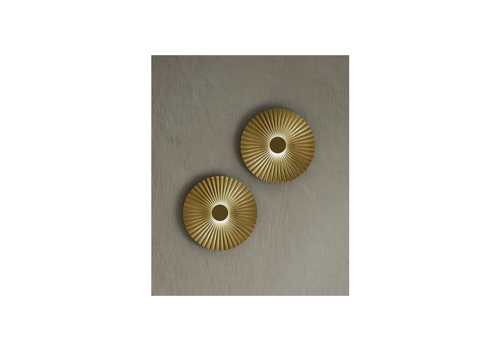 Pliè firmata da Paolo Dell'Elce per Il Fanale è una lampada da parete di forma circolare con superficie ad effetto plissettato in ottone naturale. Il diffusore è di forma cilindrica ed adotta una sorgente luminosa di tipo LED integrata con sistema di dimmerabilità Triac. Pliè è disponibile in differenti modelli.