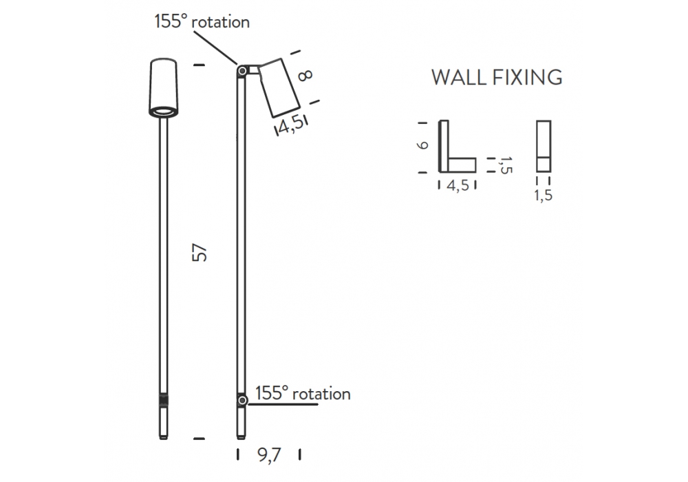 Untitled Mini Spot firmata da Bernhard Osann per Nemo è una lampada da parete interamente strutturata in alluminio estruso verniciato nero opaco. Il diffusore e di forma cilindrica ed alloggia una sorgente luminosa di tipo LED dimmerabile.