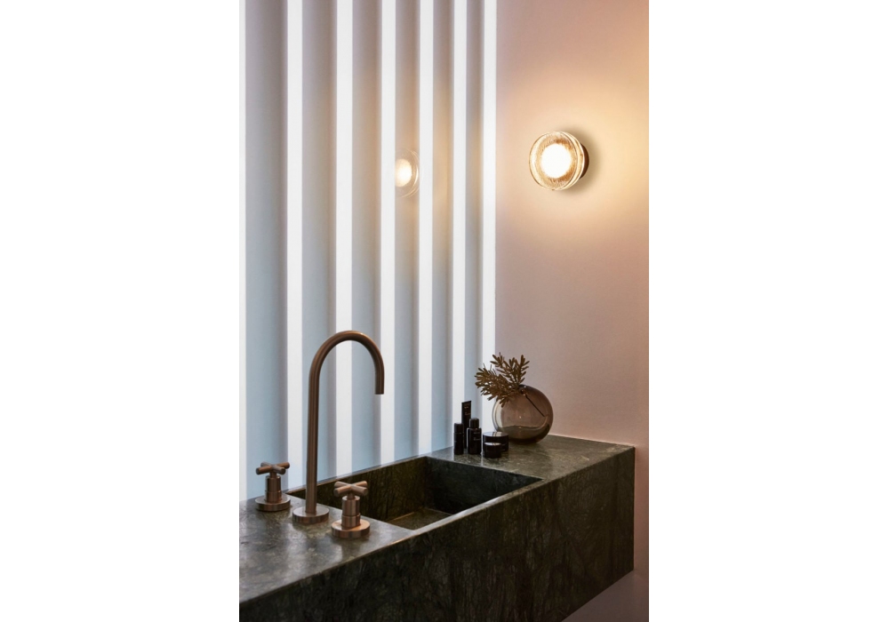 Roc firmata da Joan Gaspar per Marset è una lampada da parete realizzata in alluminio e paralume in vetro. Adatta anche per esterni.