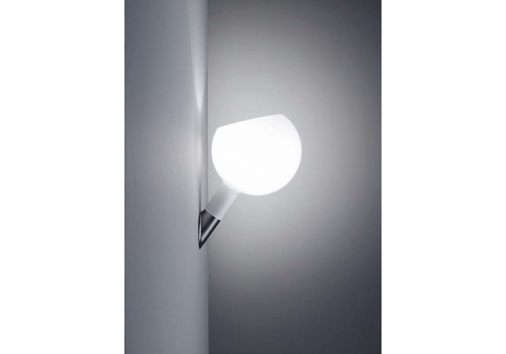 Parola firmata da Gae Aulenti e Piero Castiglioni per Fontana Arte è una lampada da parete a luce diffusa dimmerabile con diffusore in vetro soffiato lucido colorato in pasta. Supporto parete in metallo ottone nichelato. Disponibile in differenti finiture.