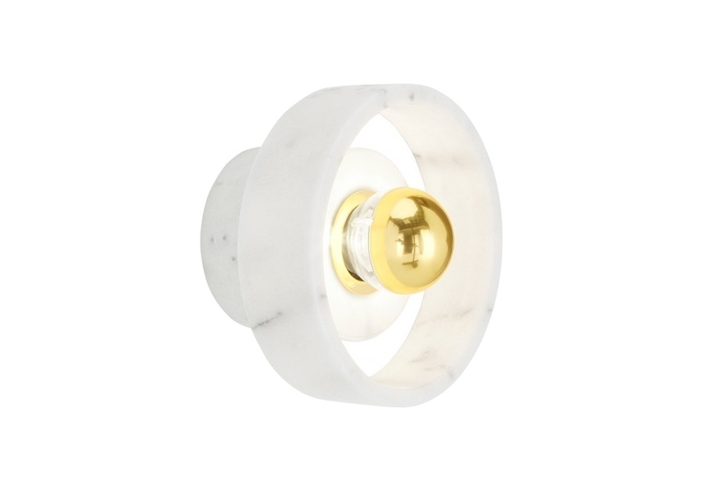 Stone Wall firmata da Tom Dixon è una lampada da parete in marmo e corona in ottone.