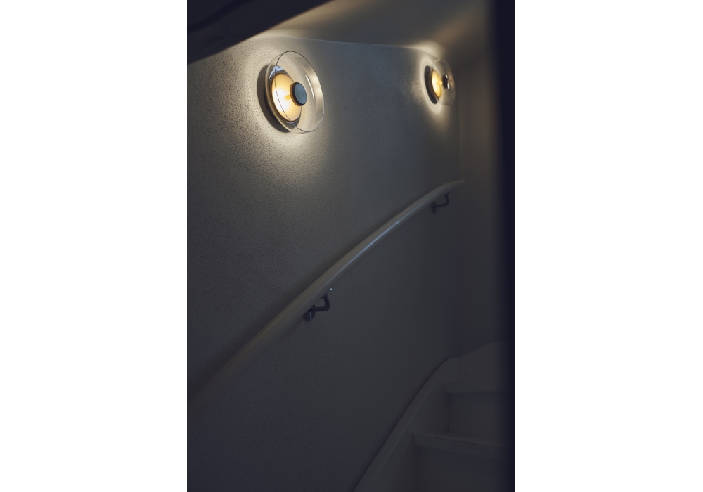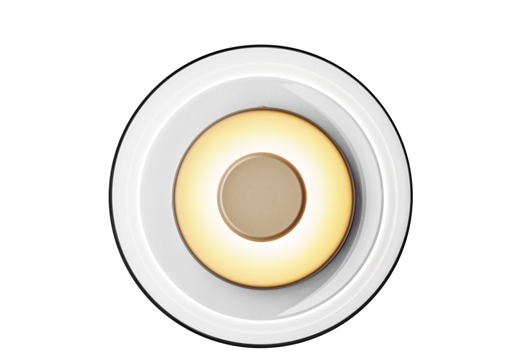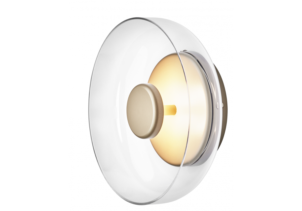 Blossi firmata da Sofie Refer per Nuura è una lampada da parete con struttura circolare in metallo in finitura oro nordico. Il riflettore è realizzato in vetro opalino o trasparente.