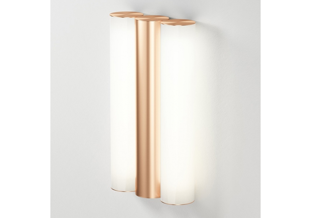 Gamma firmata da Sylvain Willenz per CVL Luminaires è una lampada da parete realizzata con tubo centrale in ottone massiccio e diffusori in policarbonato bianco. Disponibile in diverse finiture.