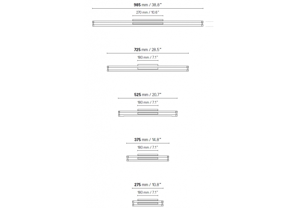 | Larghezza | 98.5 cm; 72.5 cm; 52.5 cm; 37.5 cm; 27.5 cm. |