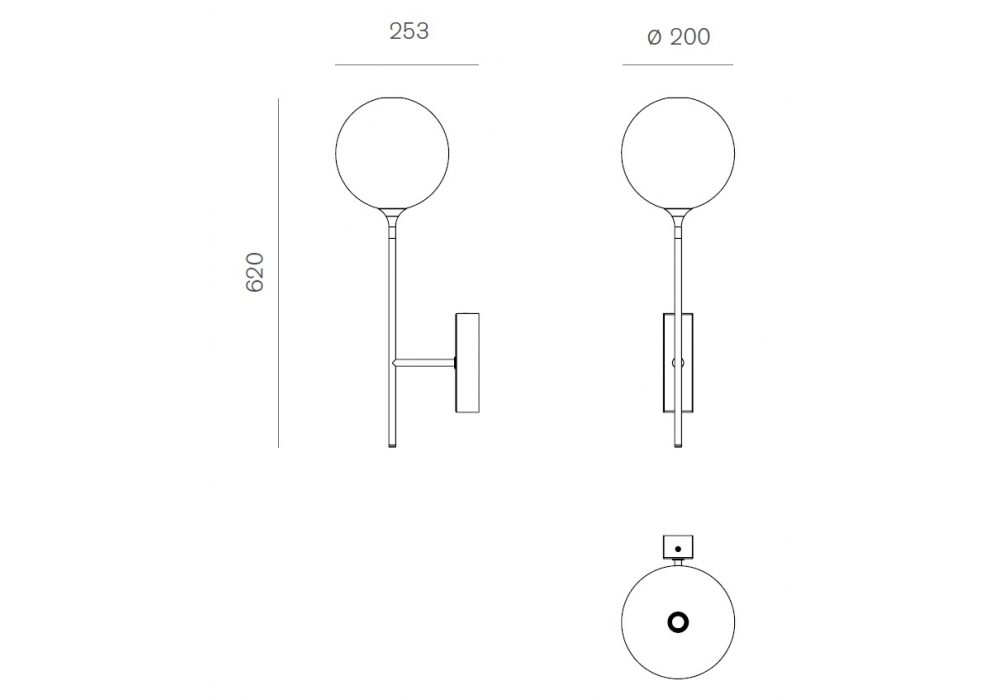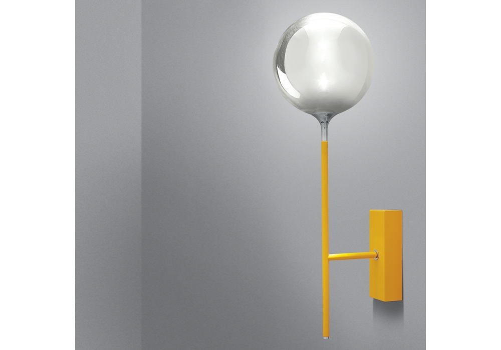 Palloncino firmata da Franco Raggi per Firmamento Milano è una lampada da parete a luce diffusa realizzata con struttura in acciaio e sfera in vetro borosilicato metallizzato.
