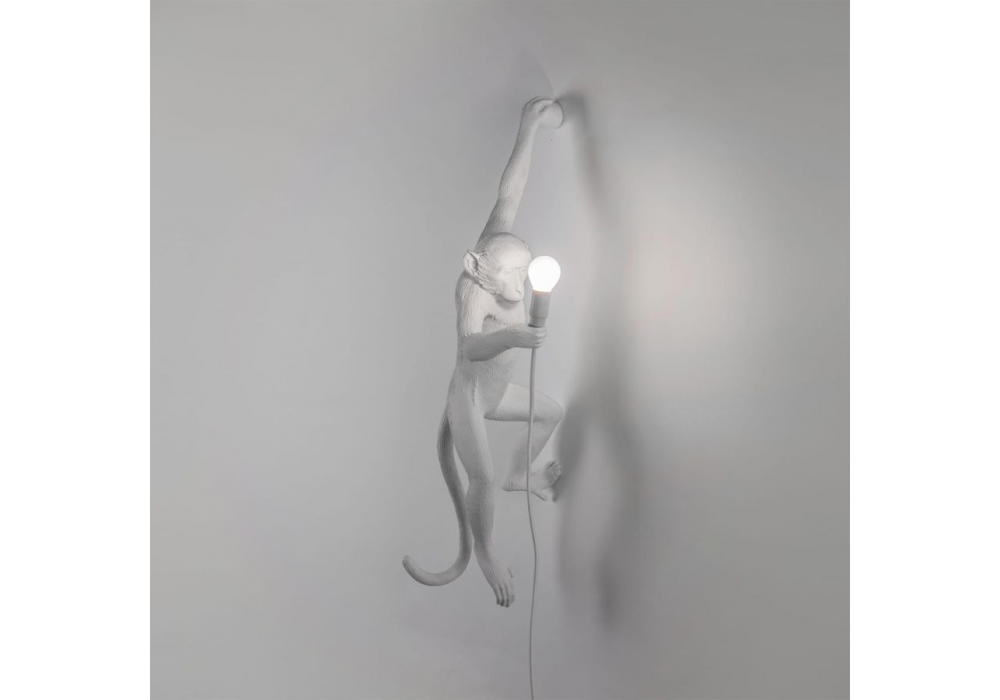 The Monkey Lamp firmata da Marcantonio Raimondi Malerba per Seletti è una lampada da parete realizzata in resina bianca e sorretta da una corda in tessuto. La sorgente luminosa adottata è di tipo LED a filamento.