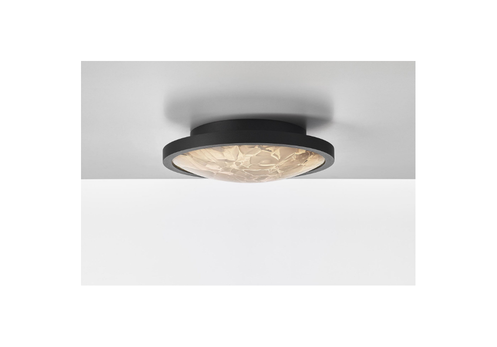 Convex firmata da Boris Klimek per Brokis è una lampada da parete / soffitto realizzata in vetro in finitura frontale lucida o acidata. Il corpo della lampada è in metallo nero opaco strutturato verniciato a polveri con rosone in tinta. Cavo tessile in finitura nera.