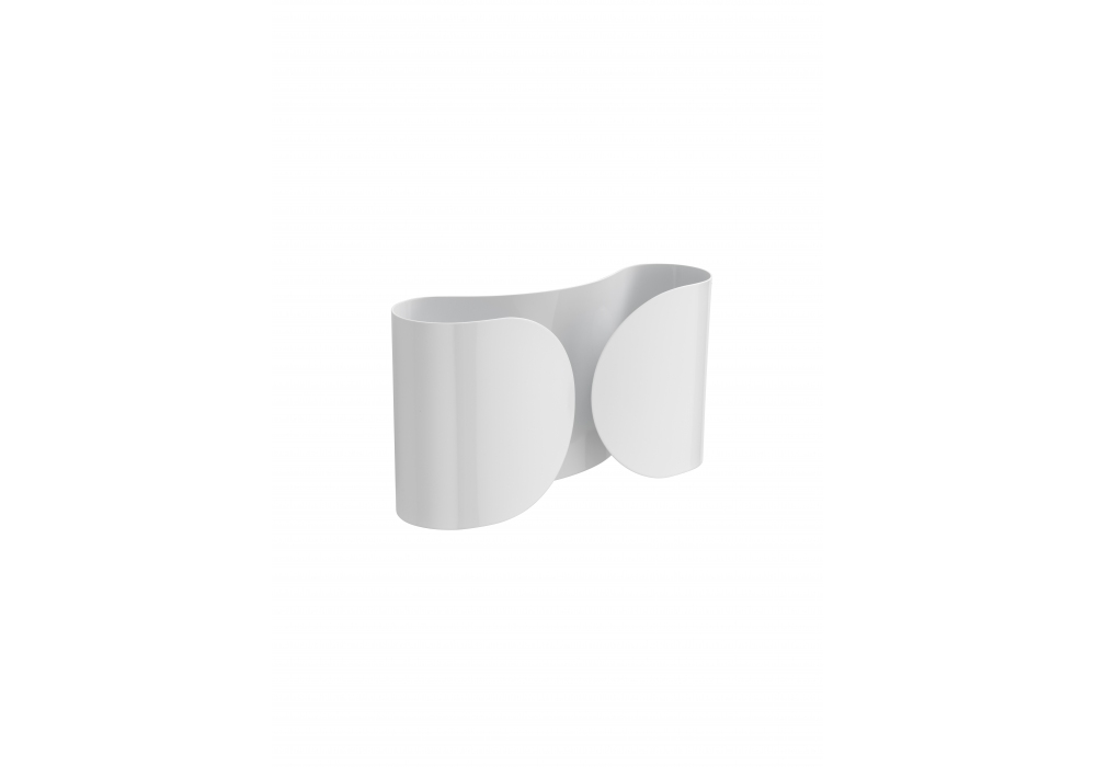 Foglio firmata da Tobia Scarpa per Flos è una lampada da parete a luce diretta/indiretta/parzialmente diffusa. L'attacco a muro è in acciaio tranciato, piegato e verniciato a polvere di colore bianco lucido. Diffusore in acciaio tranciato, curvato e verniciato a polvere. I due supporti portalampada sono in nylon, stampato ad iniezione di colore bianco. Regolabile da remoto (dimmer non incluso). Lampadine escluse.