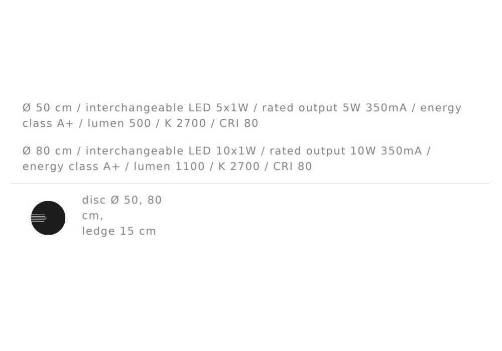 | Dimensioni | Ø 50 x W 15 cm; Ø 80 x W 15 cm |
