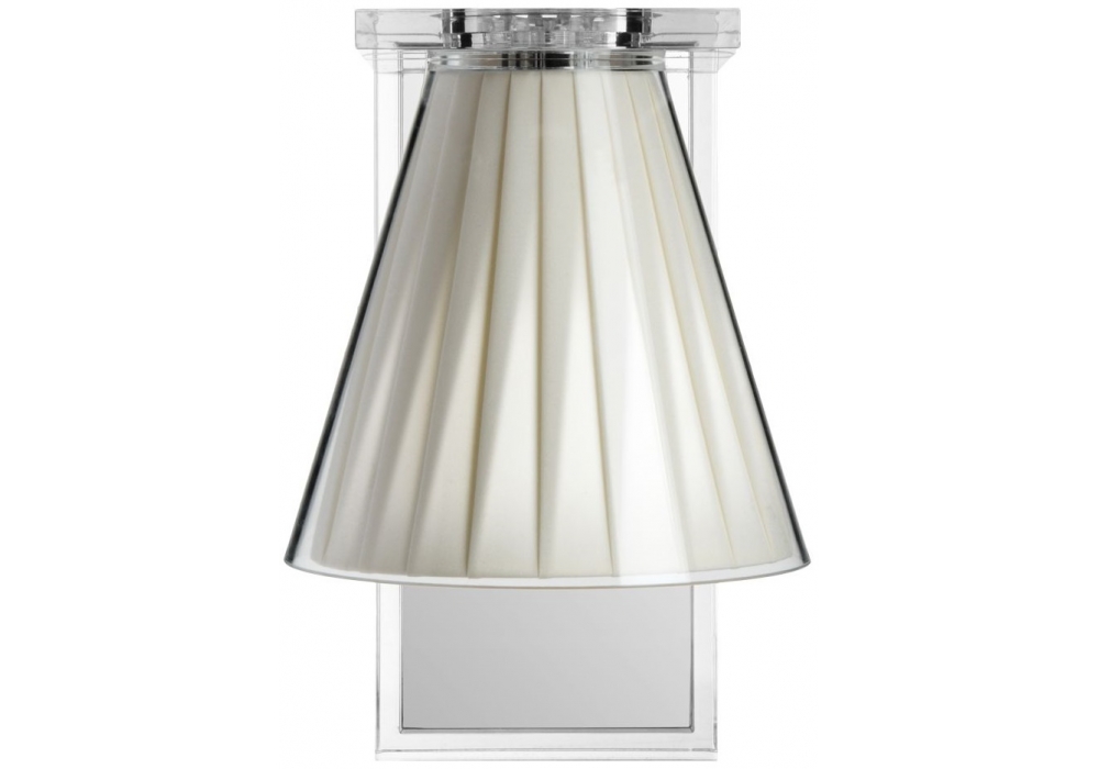 Light-Air firmata da Eugeni Quitllet per Kartell è una lampada da parete realizzata con struttura in tecnopolimero termoplastico trasparente e diffusore rivestito in tessuto.