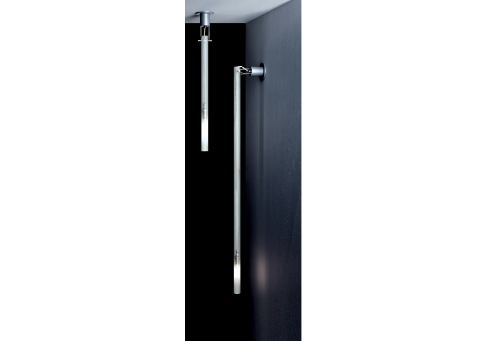 Canna Nuda firmata da Piero Castiglioni e Roberto Menghi per Nemo è una lampada da parete o soffitto con struttura snodata in metallo satinato e nickelato. Il diffusore è di forma cilindrica in vetro sabbiato e scherma una sorgente luminosa di tipo alogeno o LED dimmerabile. Canna Nuda è disponibile in differenti finiture e dimensioni.