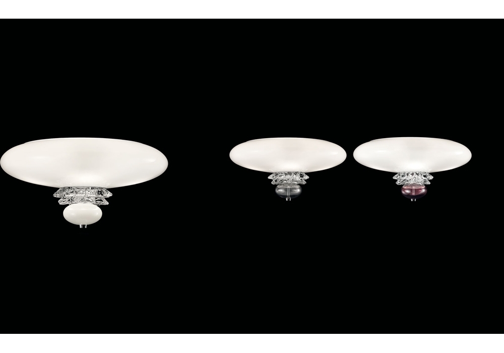 Anversa firmata e prodotta da Barovier & Toso è una lampada da soffitto con struttura portante e particolari a vista in metallo color cromo lucido. Il diffusore è di forma tondeggiante in vetro veneziano arricchito da dettagli in cristallo e scherma delle sorgenti luminose di tipo LED o alogene dimmerabili. Anversa è disponibile in differenti finiture e modelli.