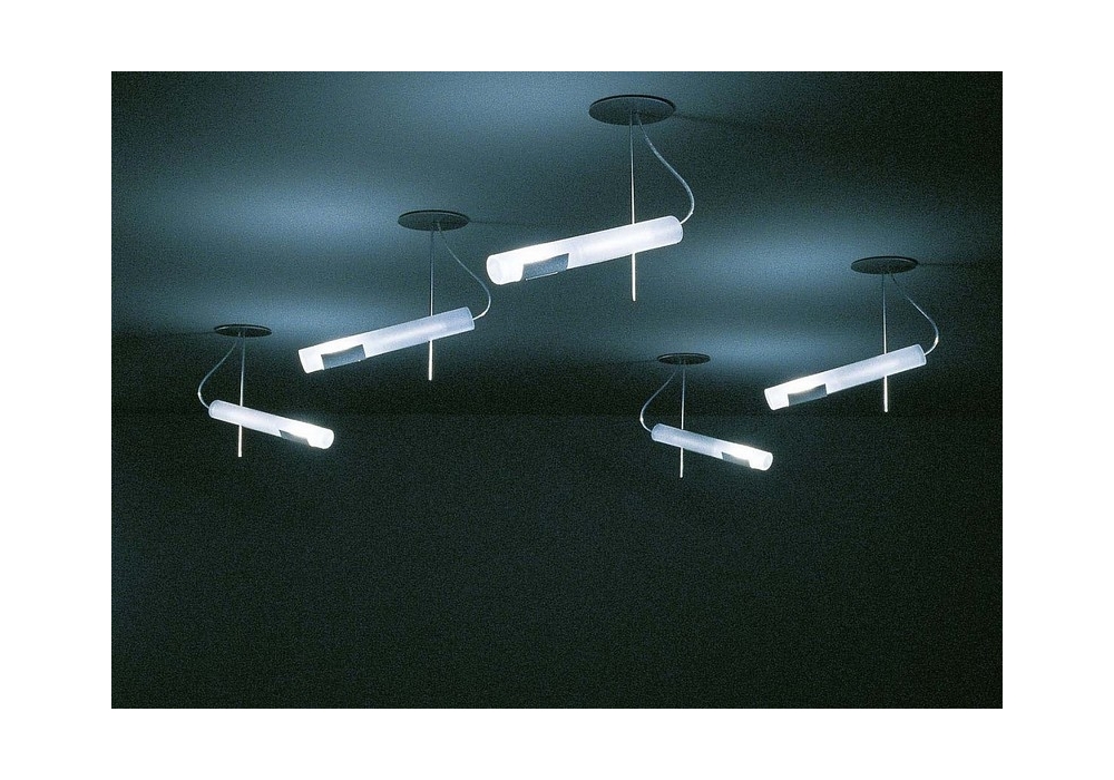Zuuk firmata e prodotta da Ingo Maurer è una lampada da soffitto in acciaio inossidabile, alluminio anodizzato naturale e vetro satinato termoresistente.