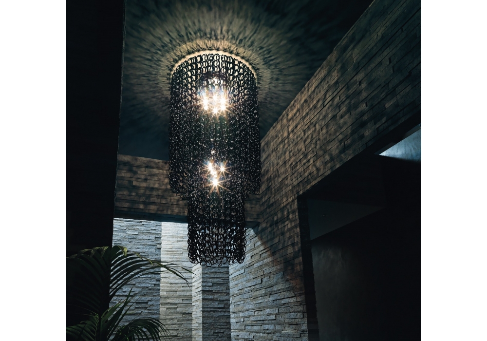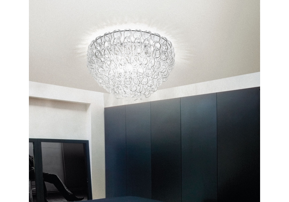 Giogali firmata da Angelo Mangiarotti per Vistosi è una lampada da soffitto con struttura portante in metallo di colore bronzo opaco o cromo lucido. Il diffusore è strutturato da molteplici anelli in vetro in diverse finiture ed adotta una sorgente luminosa con innesto E27 di tipo LED o alogena dimmerabile. Giogali è disponibile in differenti modelli.