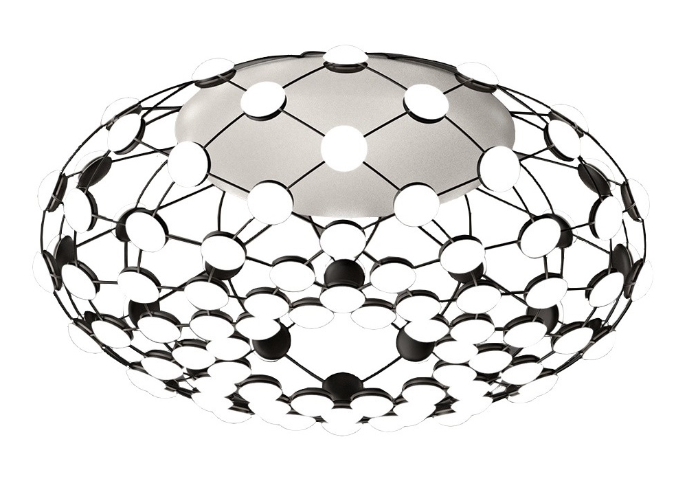 Mesh firmata da Francisco Gomez Paz per Luceplan è una lampada da soffitto a LED con struttura in acciaio nero e lenti in policarbonato bianco opalino.