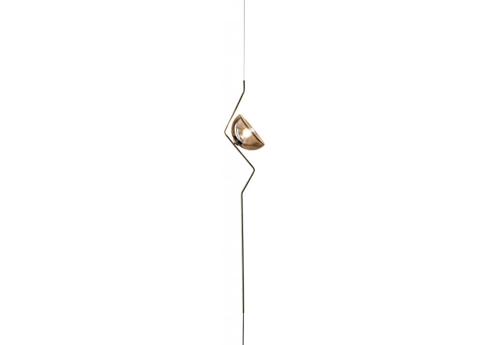 Tramonto firmata da Oriano Favaretto per Cattelan Italia è una lampada da terra-soffitto realizzata con struttura in ottone e paralume in cristallo fumé.
